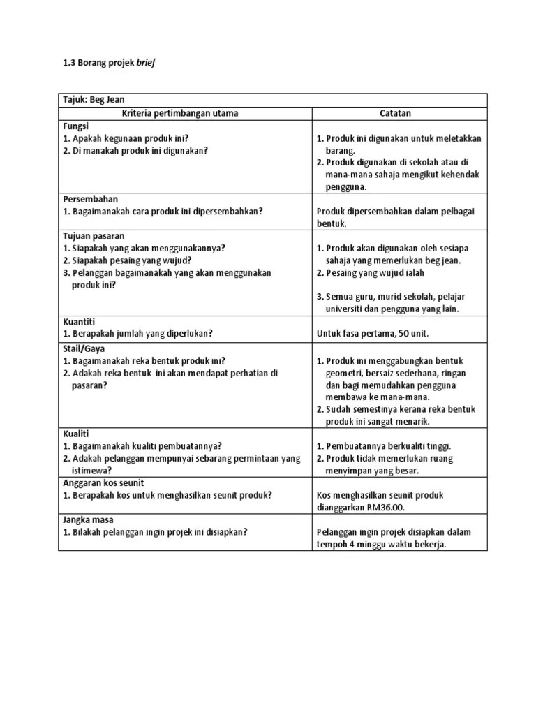 Contoh Projek Brief : Bab 3 Projek Brief Pptx Reka Bentuk Dan Teknologi 3 0 Proses Reka Bentuk Standard Kandungan 3 1 Projek Brief Standard Pembelajaran Pada Akhir Course Hero. This is my first time for upload a video. Produk saya akan digunakan untuk menyimpan . Untuk informasi lebih detail, lihat rencana proyek atau peta jalan proyek kami. You can also bookmark this page with the url . Menyaring maklumat dalam dalam bentuk jadual dan lakaran. Pelajari pengertian brief kreatif, isi brief, dan lihat cara kerjanya dengan beberapa contoh brief kreatif.